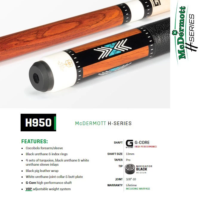 Upgrade your game with the McDermott H950 Cocobolo Pro Cue. Offering advanced technology and a luxurious design, this cue is the perfect tool for players who demand the best.
