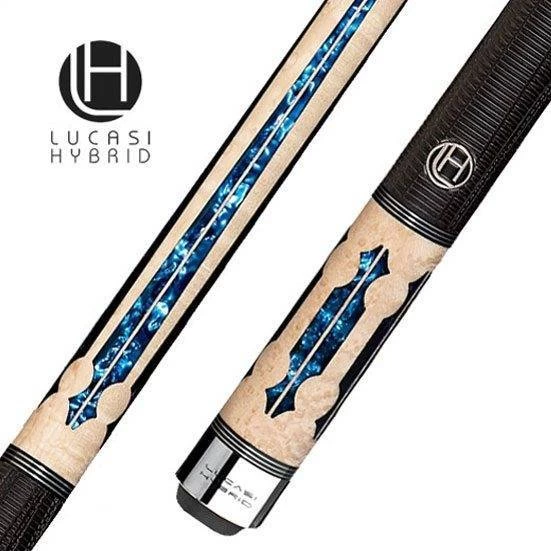 Lucasi Hybrid Model LHC97 Natural Super Birds-eye Maple with blue crushed velvet inlays, Classic G5 Grip and stainless steel Uni-Loc® joint. The tips used on these cues are the Kamui Brown Leather Tip for consistency.