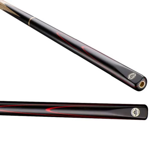 The cue features a sleek double ebony front splice paired with elegant red veneers, offering a striking look that complements its technical brilliance. This Peradon Eden Three Quarter Snooker Cue is available in medium to heavy weights, allowing players to tailor their experience for optimal control and precision. Choose from a range of extensions, including the practical 6-inch or versatile 23-inch, for greater flexibility during gameplay.